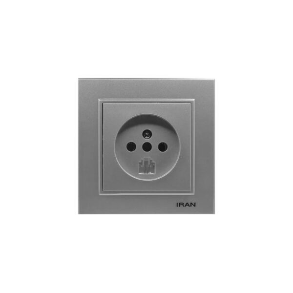 پریز تلفن دوکاره (مدل برلیان) نقره ای میانی رنگی ایران الکتریک