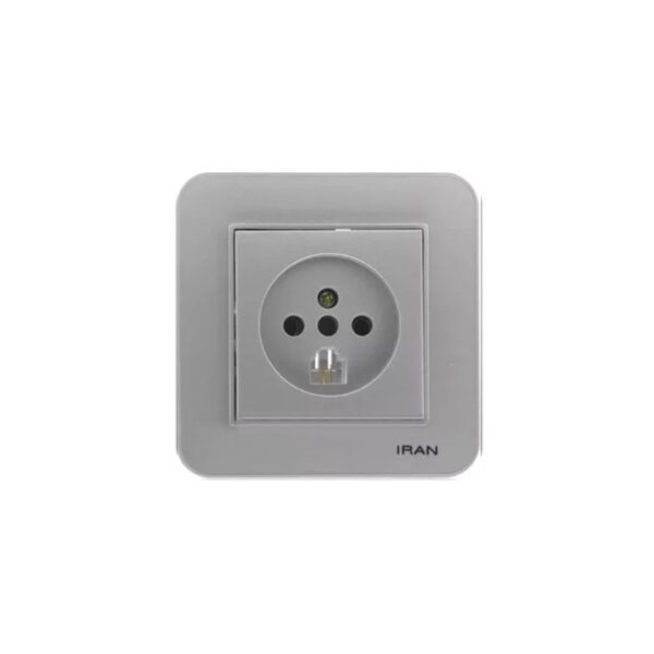 پریز تلفن دوکاره (مدل ارس) قاب نقرهای زه سفید میانی رنگی ایران الکتریک