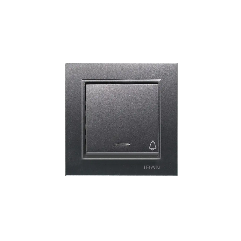 کلید شاسی زنگ برلیان ذغالسنگی، دکمه زنگ با کیفیت و طراحی زیبا از ایران الکتریک. ایدهآل برای ایجاد یک ورودی شیک با رنگ مدرن