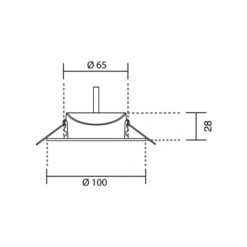 این چراغ با فریم ۱۰۰mm و ارتفاع ۲۸mm طراحی شده و رنگ فریم آن سفید است. درجه حفاظتی IP20 نشان میدهد که این محصول برای استفاده در محیطهای داخلی و خشک مناسب است.